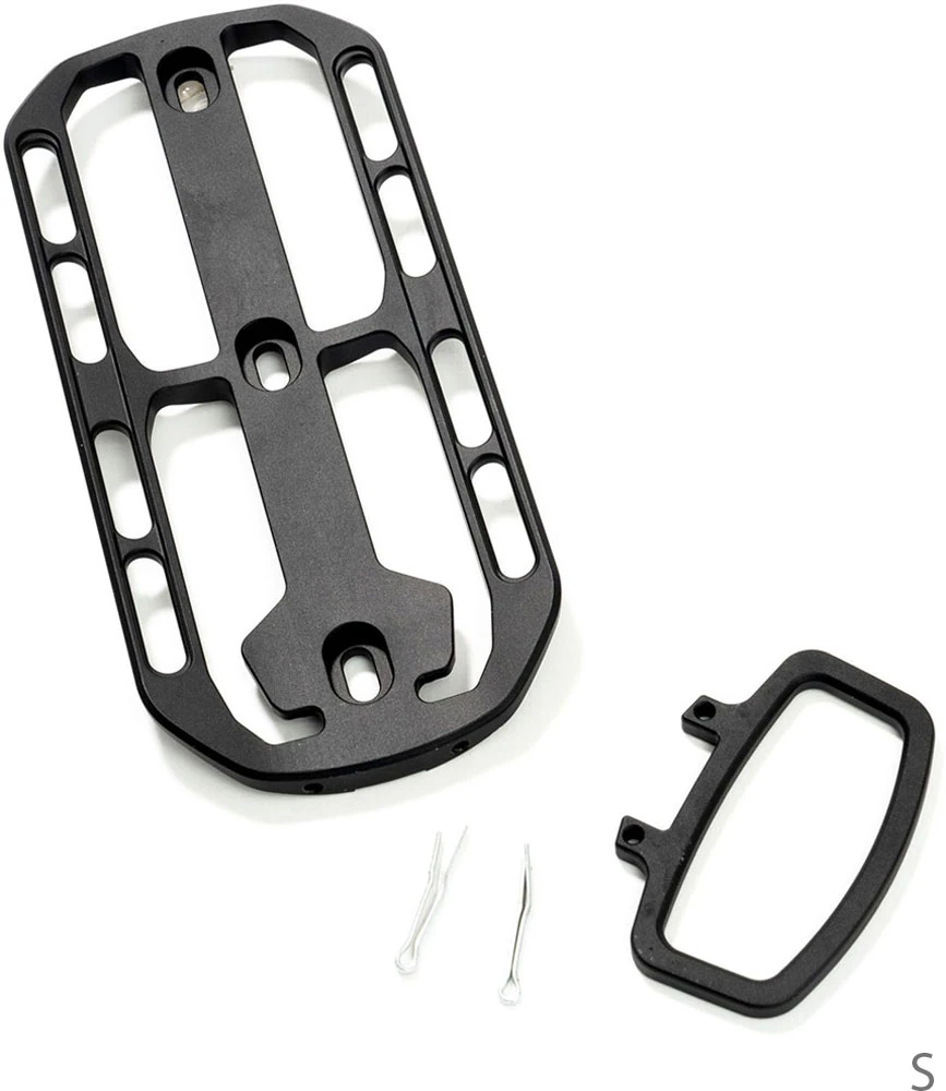L’astucieux système de porte-bagages Cargo de Fixplus en aluminium se fixe sur le porte-bidon ou sur les œillets de fourche.