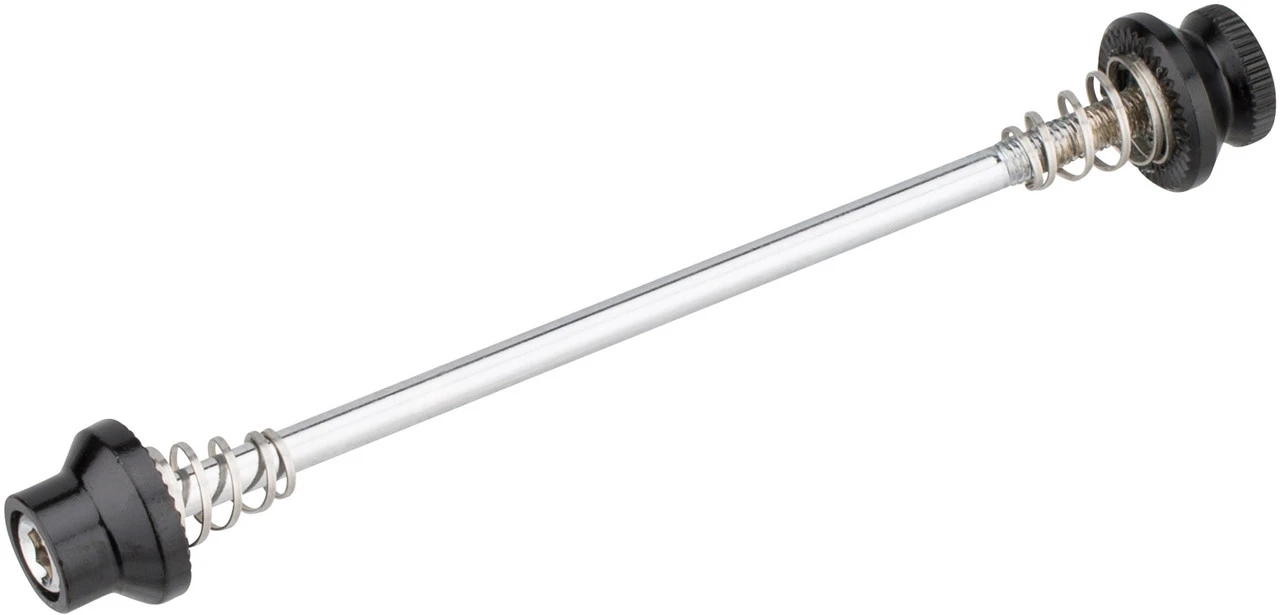Spécifications :Largeur :roue avant : 100 mm, roue arrière : 135 mmDiamètre de l’axe :5 mmInformations techniques :Utilisation :roue avant : 9 x 100 mm, roue arrière : 10 x 135 mmType :axe de serrageMatériau de l’axe :acier (CrMo)Matériau des écrous:aluminium (6061-T6)Longueur de l’axe :115 mm (avant), 151 mm (arrière)Caractéristiques :logement d’outil : hexagone de 5 mmContenu :1 paire de serrages rapides de moyeu 3min19sec VTT